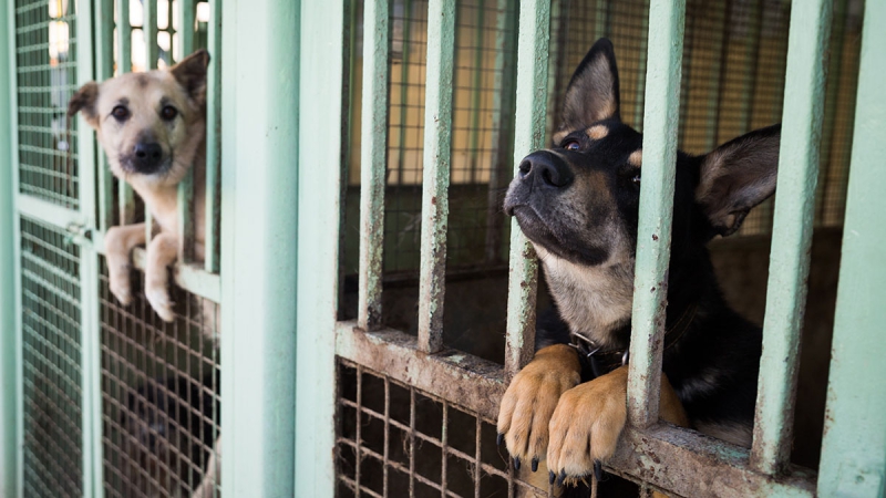 Собака Боня, из-за которой уволили курьера в Челябинске, освоилась в приюте